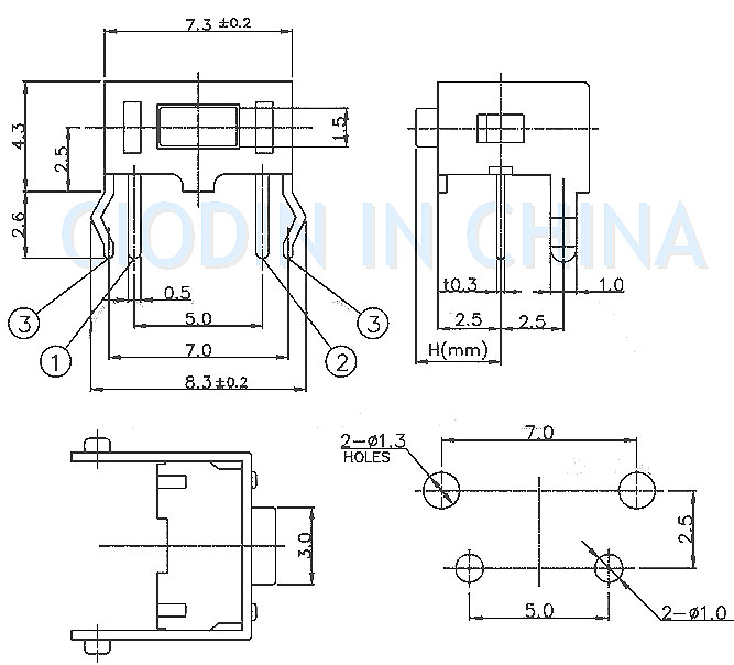 產(chǎn)品尺寸: 外形尺寸:3.5mm*6.0mm*4.3mm